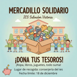 Con la ilusión de la Navidad a la vuelta de la esquina, y en el marco de la celebración de nuestro 25º Aniversario, desde el IES queremos invitar a toda la comunidad educativa a participar en una iniciativa muy especial. El próximo jueves, 19 de diciembre, celebraremos un Gran Mercadillo Solidario en nuestro centro. El espíritu …